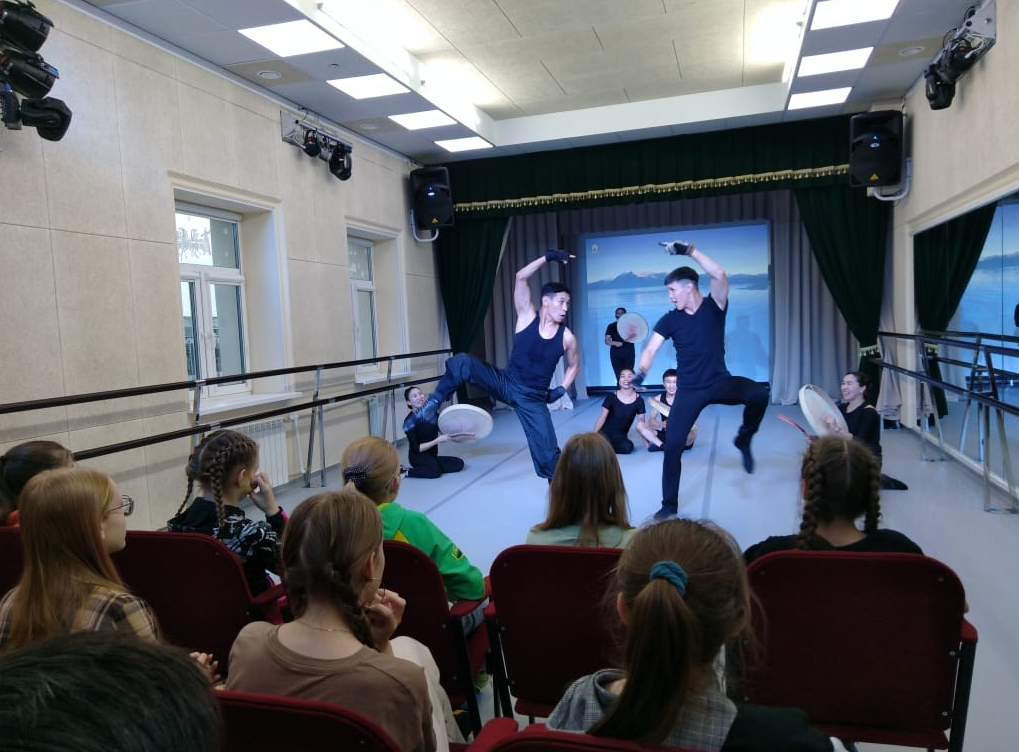 07 октября 2022 года танцевальный коллектив Чукотского окружного профильного лицея встретился с артистами Государственного академического чукотско-эскимосского ансамбля «Эргырон», что в переводе означает «рассвет». Ребята познакомились с историей создания ансамбля, биографией его первых участников.  Также вниманию ребят были представлены фотографии разных лет с мест проведения гастролей, рабочих моментов, документы, подтверждающие достижения в области песенного и танцевального искусства. Обучающиеся Лицея посетили недавно обновленный класс для хореографии, в котором сделано все для того, чтобы совершенствовались танцевальные навыки. Далее прошли танцевальные мастер-классы – было исполнено пять танцев с последующим разбором движений, объяснением смысла каждого из них.  Лицеисты попробовали повторить танцевальные движения, взяли в руки национальный музыкальный инструмент – «ярар» и даже постучали в него. По завершении встречи участники «Эргырона» ответили на вопросы ребят. Мероприятие очень понравилась лицеистам, они мотивируют ребят и воодушевляют на самосовершенствование.