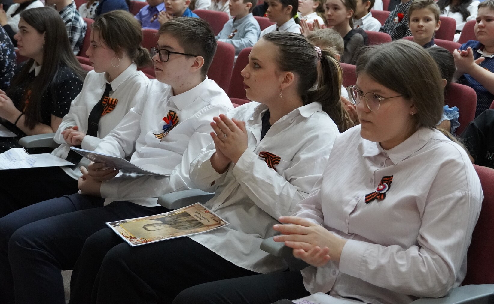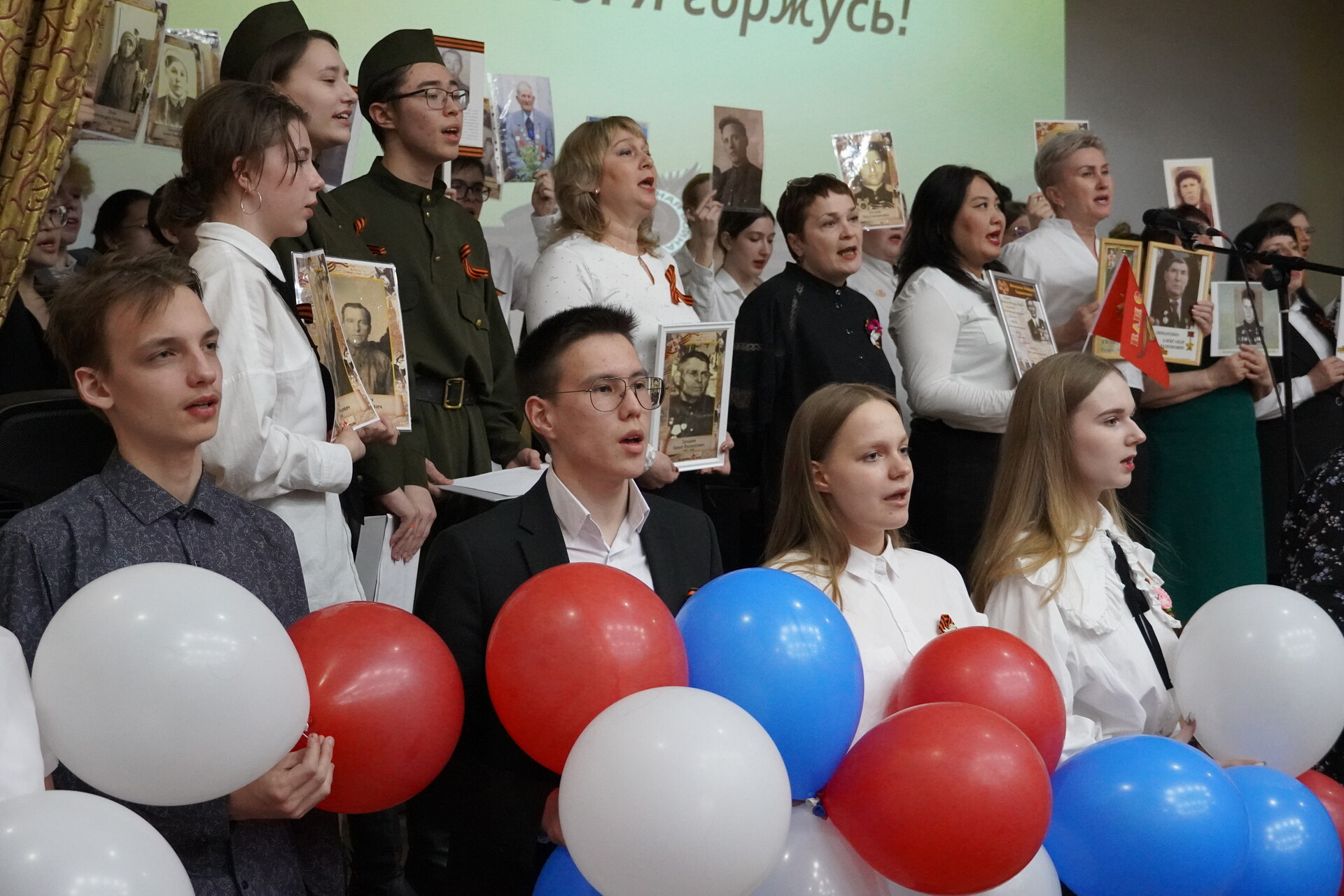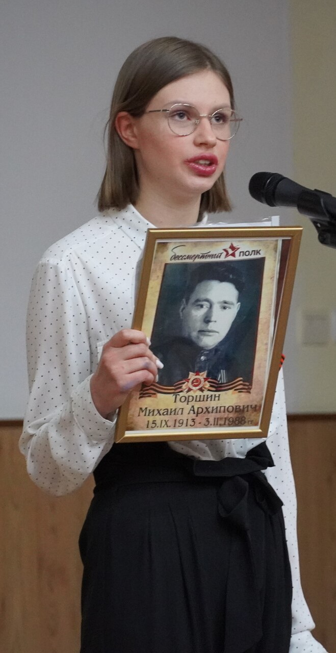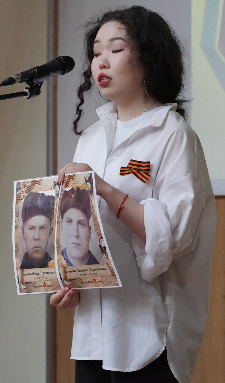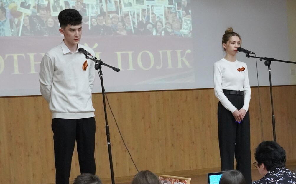 Член регионального отделения историко-патриотического движения «Бессмертный полк» в Чукотском автономном округе Ручьева Елена Викторовна рассказала ребятам об особенностях проведения Акции «Бессмертный полк в 2023 году. Со сцены звучали стихи,  и песни, посвященные подвигу  участников Великой Отечественной войны и тружеников тыла, ушедших из жизни и ныне живущих. Ребята делились со слушателями фотографиями, архивными и наградными документами, трогательными семейными историями и рассказами о подвигах своих родных. Педагоги лицея  тоже стали участниками акции. Затронув душу каждого, прозвучала песня «День Победы» в исполнении всех присутствующих в зале в завершении мероприятия.