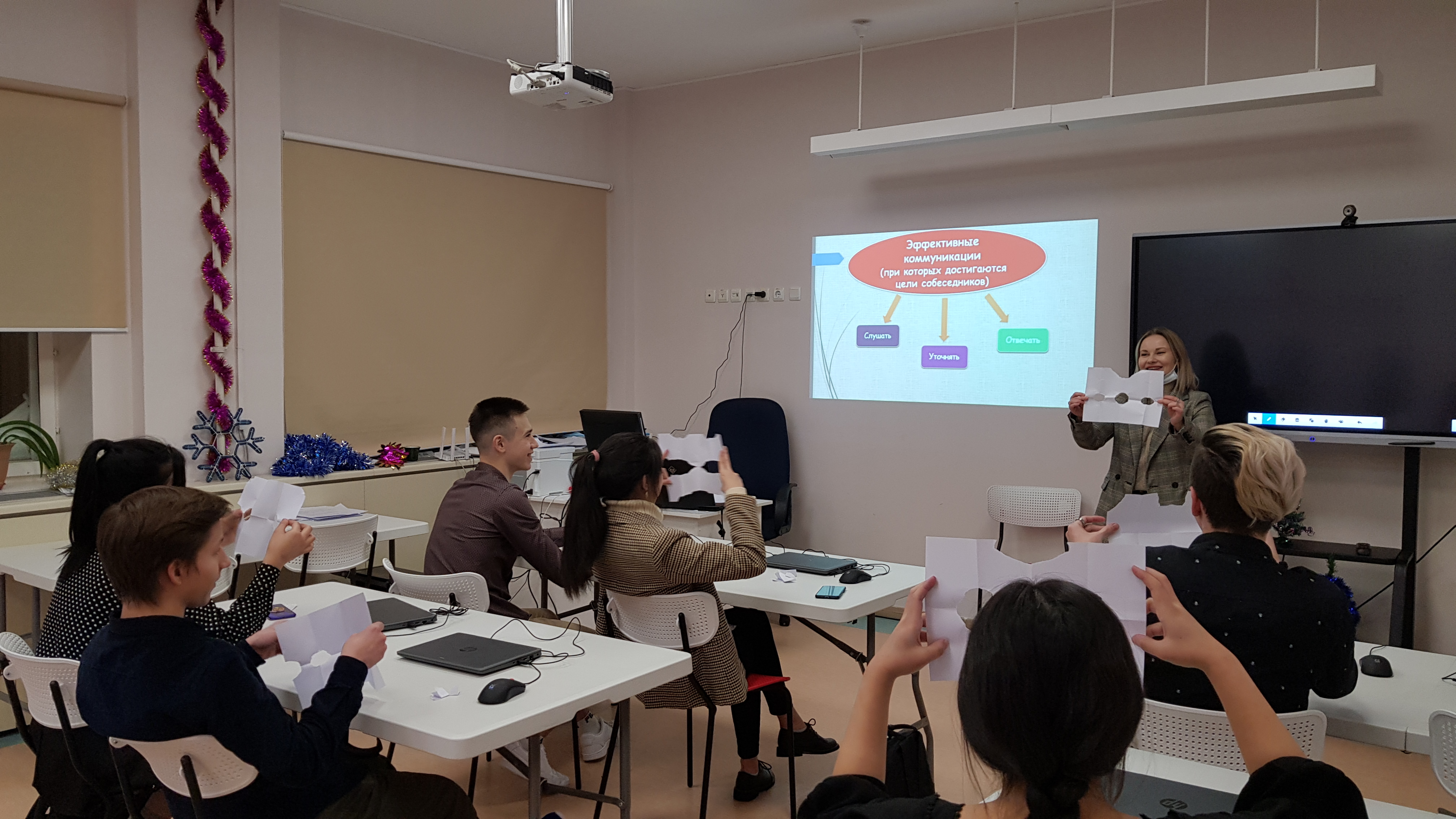 Как говорить, чтобы тебя слушали и слышали? Почему, получая одну и ту же информацию, мы понимаем или воспринимаем её по-разному? Обучающиеся по программе «Я - лидер» Центра образования цифрового и гуманитарного профилей «Точка роста» разбирались в этом на занятиях курса, изучая новую тему «Эффективные коммуникации». Узнали о том, что это нечто большее, чем просто обмен информацией. Речь шла о понимании эмоций и намерений, стоящих за словами. Помимо способности четко передать сообщение, нужно уметь слушать так, чтобы уяснить полный смысл того, что говорится, и заставить другого человека почувствовать, что его слушают и понимают. Ребята поучаствовали в тренинге под названием «Восприятие», проанализировали его, познакомились с техникой «Парафраз» в разделе «Уточнение».