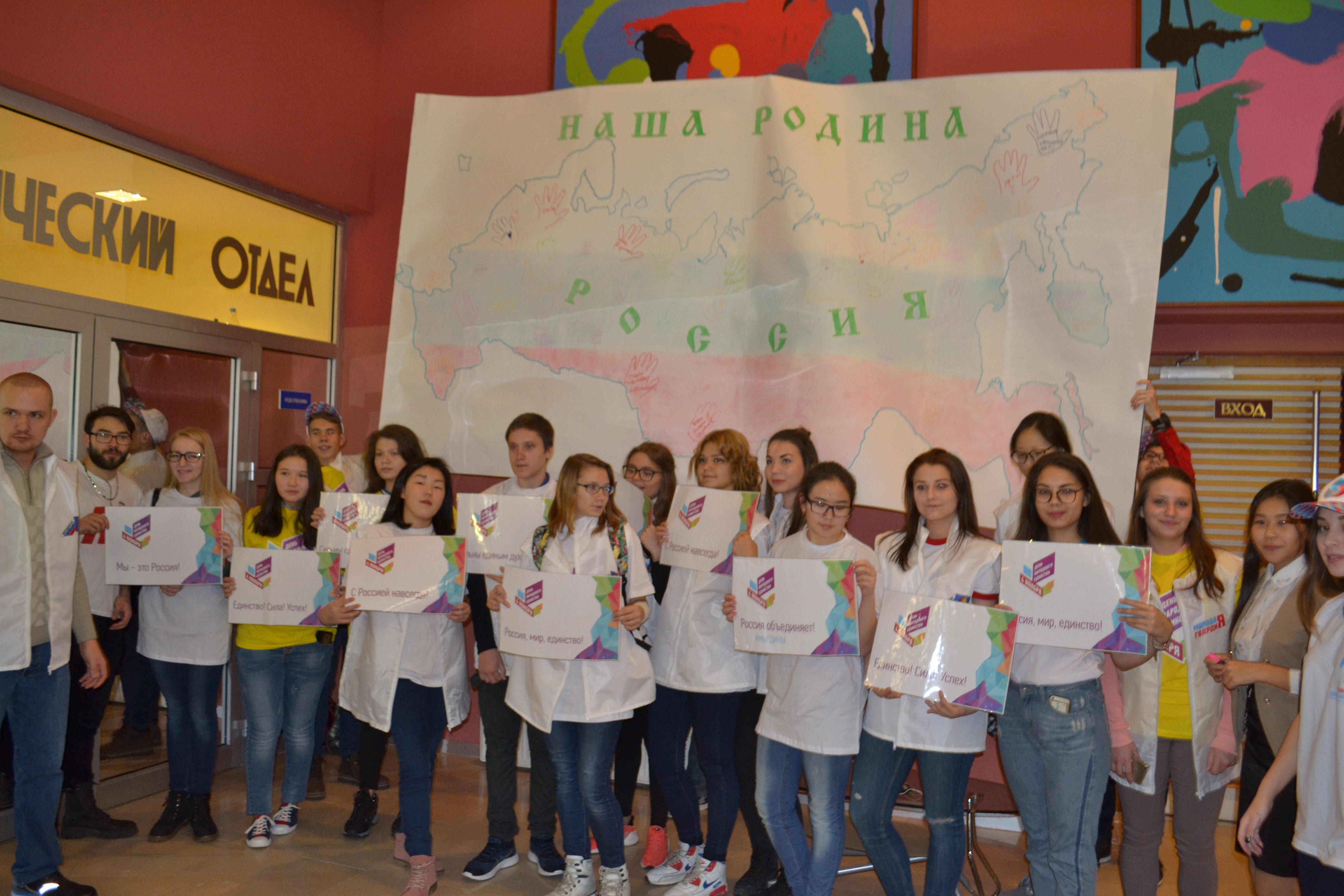 Учащиеся лицея, участники Российского движения школьников, приняли активное участие в открытии выставки «1917-2017 XX век: Уроки столетия». В рамках участия в мероприятиях, посвящённых Дню народного единства, наши ребята приняли участие и в акции «Мы вместе!!!» совместно с Анадырской городской молодёжной общественной организацией «Молодёжная МЭРиЯ Анадыря», которая состоялась 4 ноября в Доме народного творчества. На огромном полотне, изображающем контуром Россию, учащиеся лицея вместе с учащимися другим образовательных учреждений города рисовали и писали пожелания. Во время концерта лицеисты стоя поддержали всех гостей праздника, развернув флаги Российской Федерации, Чукотского автономного округа и Общероссийской общественно-государственной детско-юношеской организации «Российское движение школьников»