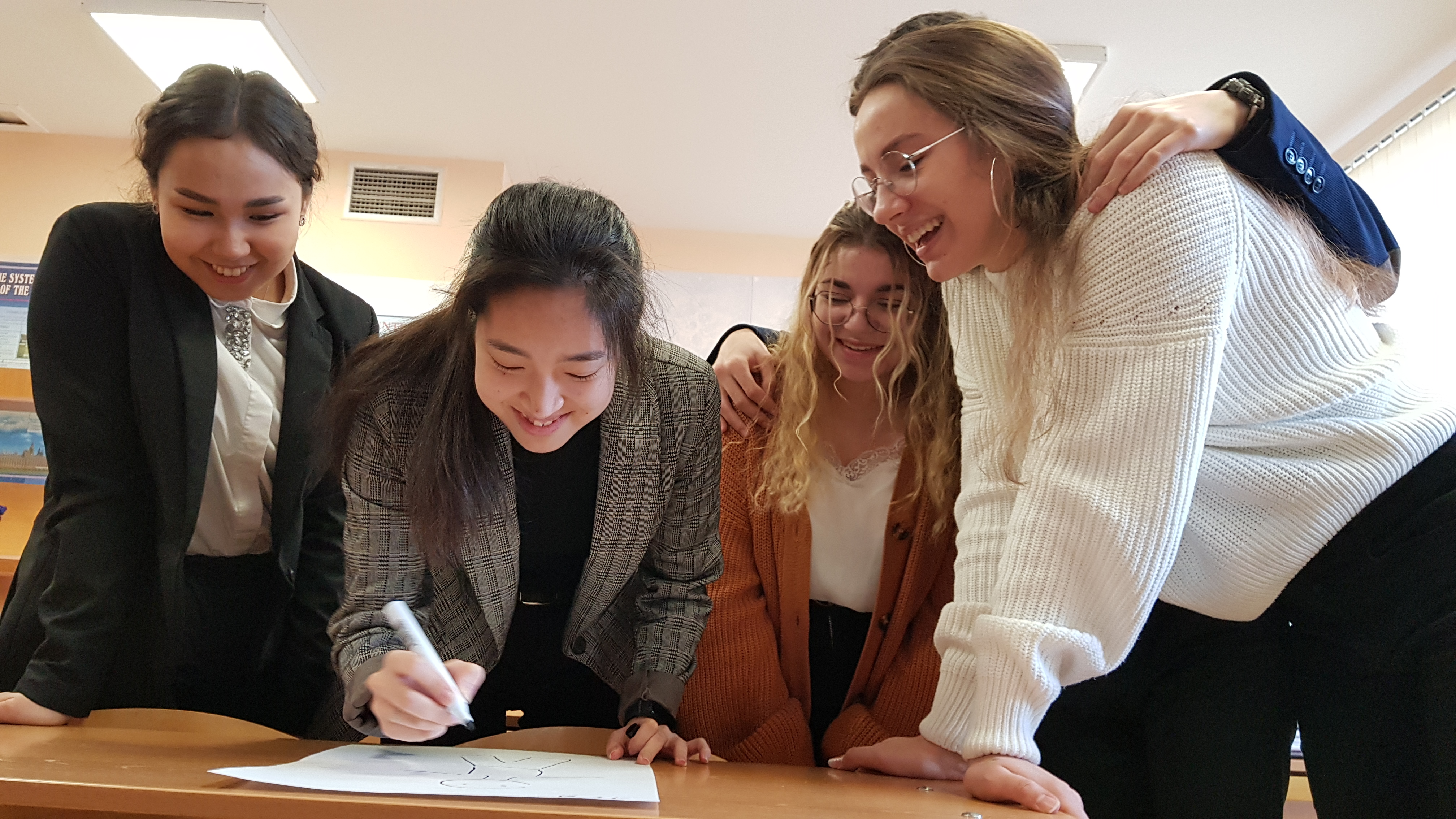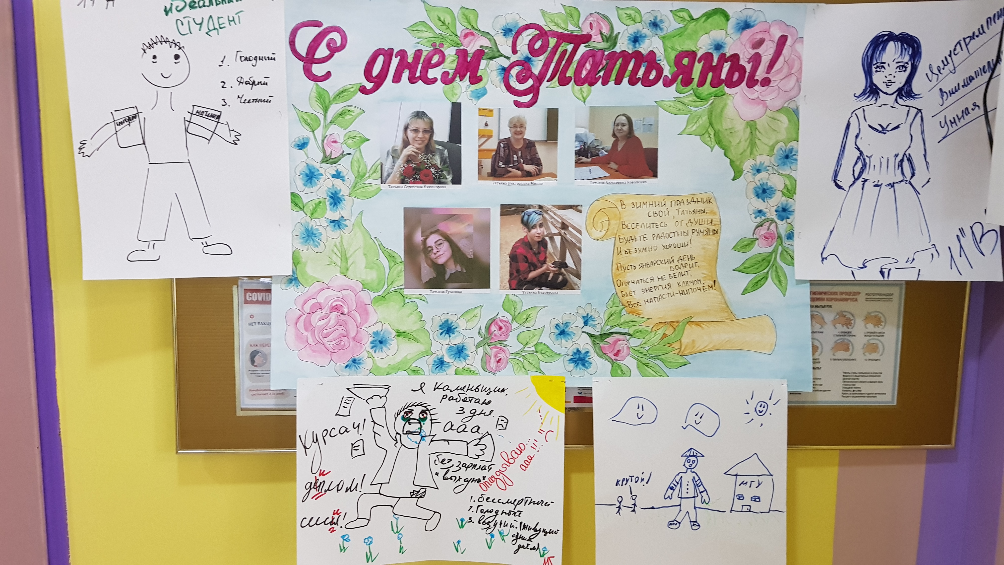 25 января в лицее проходило праздничное мероприятие, посвященное традиционному русскому празднику — Дню Татьяны или Дню студента! День святой великомученицы Татьяны стал праздником студентов Университета, позднее — всего студенчества, а сейчас праздником для всей молодежи. Поэтому с самого утра в лицее звучала музыка, которая встречала всех лицеистов и педагогов, создавая праздничное настроение! Не остались без внимания и обладательницы прекрасного имени Татьяна! Для всех Татьян нашего лицея был подготовлен праздничный плакат с поздравлениями, а также сладкие подарки. А для обучающихся 11-х классов, как для будущих студентов, волонтерами лицея была проведена праздничная Акция «Образ идеального студента», в которой каждому выпускному классу нужно было за 5 минут изобразить на листе бумаги образ студента и написать три слова, характеризующих их творение. Интересные работы получились у всех классов! Каждый постарался внести в собирательный образ студента что-то своё отличное от других! И у них это получилось!
