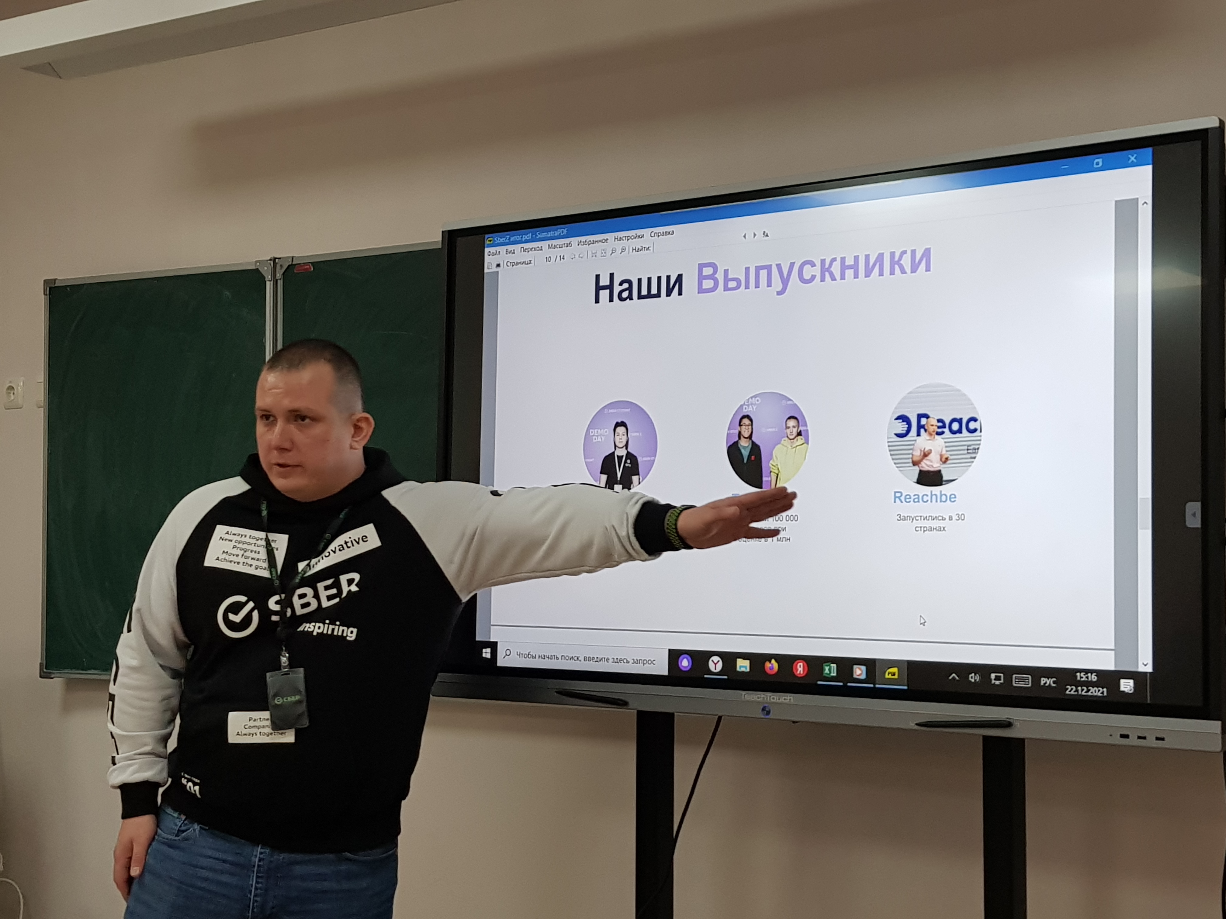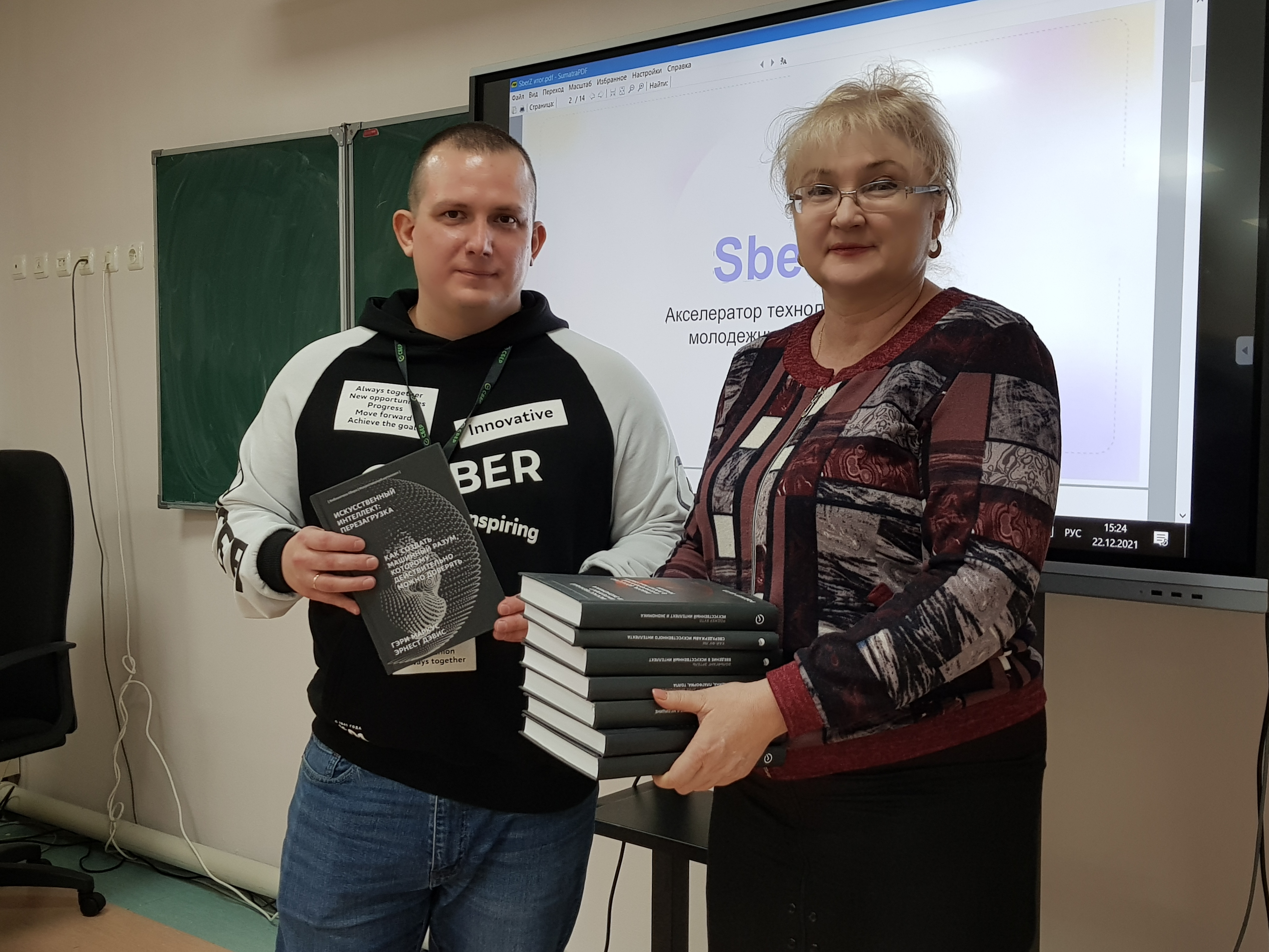 22 декабря 2021 года в Чукотском окружном профильном лицее на базе Центра образования цифрового и гуманитарного профилей «Точка роста» состоялась встреча с Колонцовым А.В., управляющим Чукотским отделением Дальневосточного банка ПАО, с лицеистами 11-х классов информационно-технологического, физико-математического, гуманитарного профилей. Ученики узнали новую информацию о программе - Школьный акселератор SberZ — программе по обучению школьников 8-11 классов технологическому предпринимательству. Беседа прошла оживленно и интересно, отвечали на сложные вопросы. Более точным и правильным ответом стал ответ ученицы гуманитарного профиля, ей был вручен подарочный сертификат с кодом от библиотеки Сбербанка. В дар библиотеке Лицея Колонцов А.В. передал серию книг, которые вызвали интерес и у учеников, и у педагогов.
